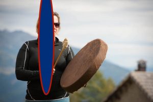 Hier die Bisontrommel in Aktion. Dabei entstehen immer wieder eigenartige Bildstörungen, während der Geist des Bisons von der Schamanin Besitz ergreift. Vielleicht wurde das Bild jedoch auch erst im Nachhinein verändert, um Ihre Aufmerksamkeit zu…