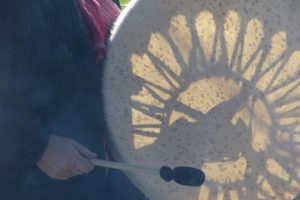 Bei diesem schamanischen Gegenstand handelt es sich um die Bergtrommel von Udo. Sie ist mit Ziegenfell bespannt und ruft unter anderem die Berggeister zum spirituellen Feedback für unser magisches Workshop im Gebirge zu uns.