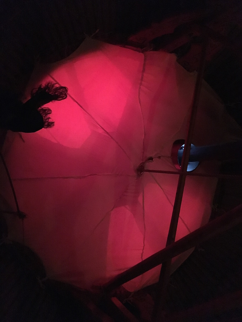 In einem sagenhaften Land hoch oben im Norden von Raum und Zeit bannten uns Feenhügelbewohner und andere Geister und trieben uns so fast zur Bewegungslosigkeit in eine Stille ohne Grenzen. Wir spannen ein aus Form und Bewegung und entsprangen dem Traum in die Jurte hinein.
