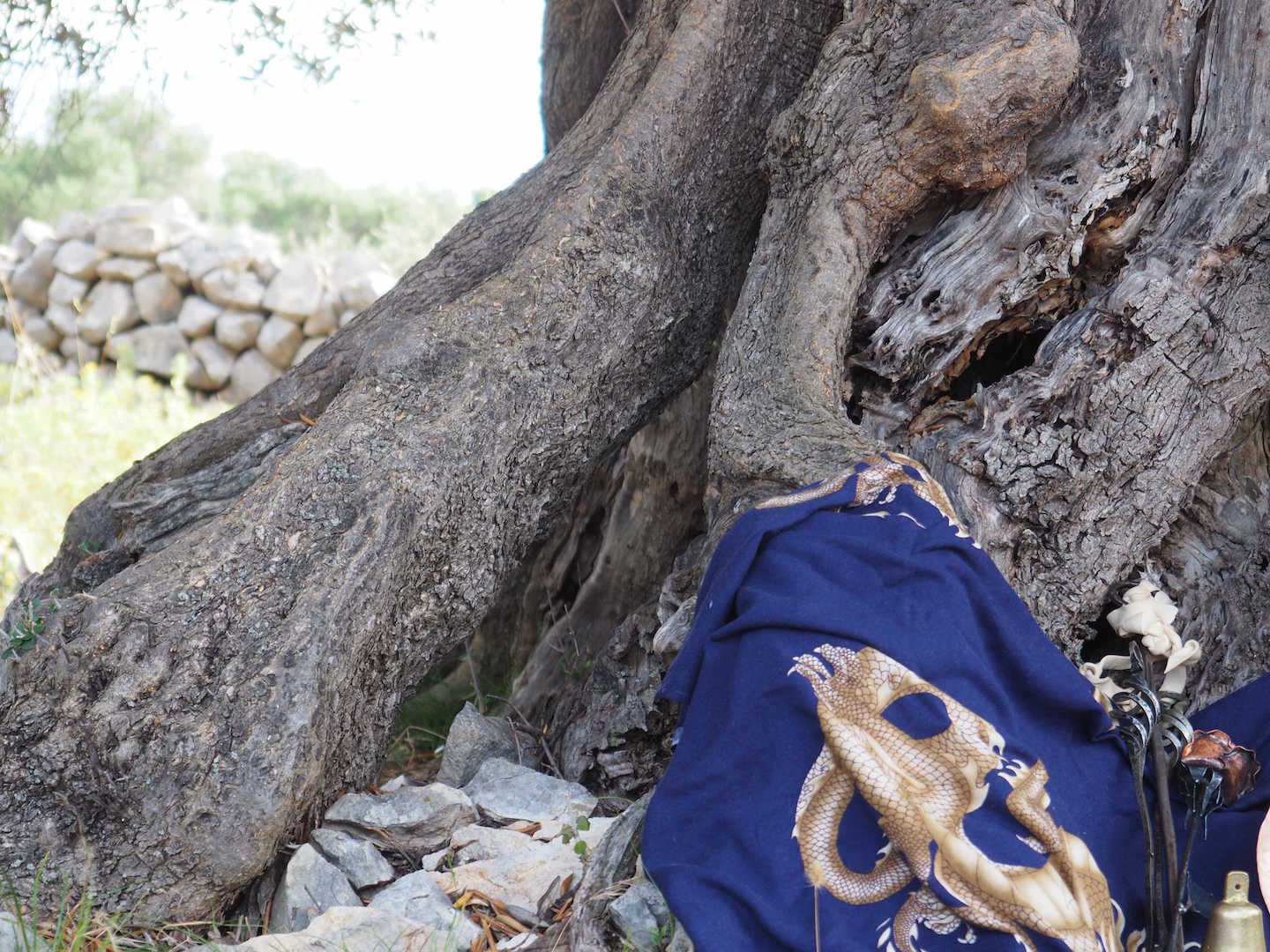 Das Beitragsbild und die anderen beiden Bilder in diesem Blog zeigen unsere Meditation in einem Olivenhain, dessen Bäume mehr als tausend Jahre alt sind.
