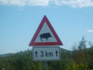 Dem der hier sanft sein Fahrzeug lenkt, ihm zeigt dies Schwein, was er verdrängt. Es weist den Weg zu wildem Glück, so Mancher schreckt davor zurück. Das Schwein zeigt immer, wie es geht, auch wenns der Mensch selten versteht. Nur eines zumeist doch versteht er, das Schwein, es läuft drei Kilometer.