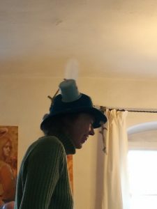 Zunächst ist es jedenfalls von Vorteil, wenn ein Hut vorhanden ist, welchen man bemalen, beispielsweise mit Runen oder Kraftbildern verzieren, mit diversen Gegenständen schmücken und in einen Zustand traumhafter Kraft und Ausrichtung bringen kann…..