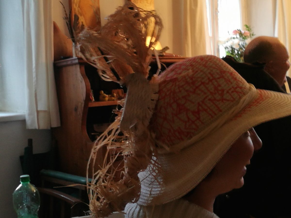 Schamanische Traumhüte haben oft etwas gar Seltsames an sich. Hier ein anderes Beispiel für einen solchen. Die dazugehörige Schamanin befindet sich selbstverständlich ebenfalls im Bild.