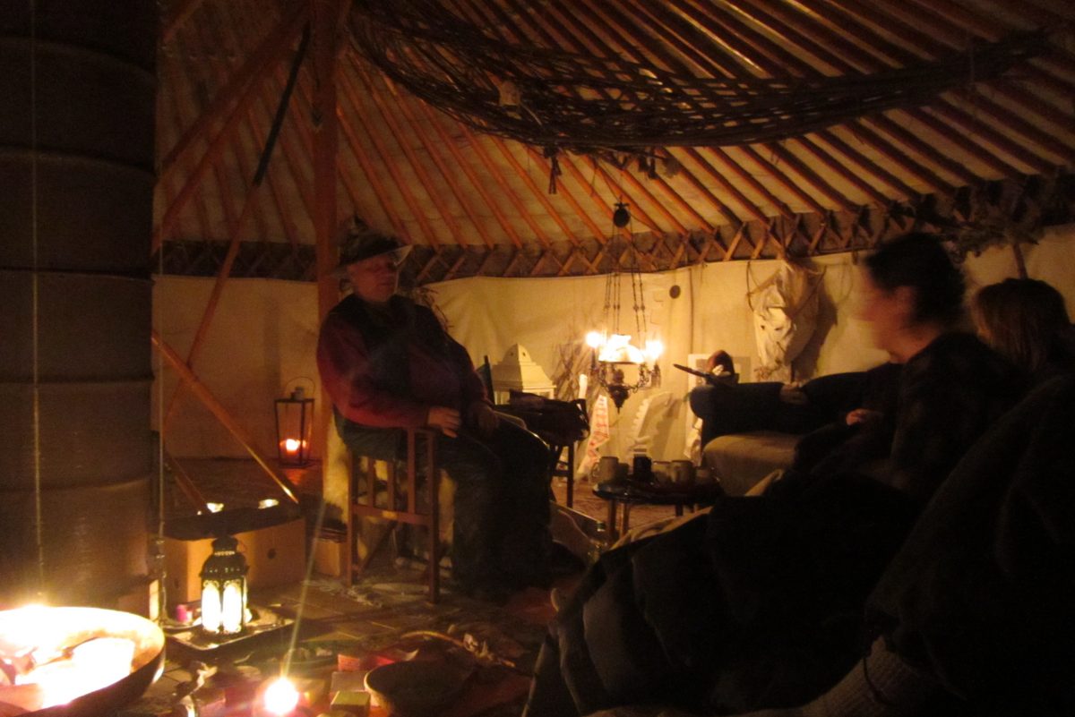 - Ein geeigneter Ort, an dem die Arbeit mit dem Traum ungestört stattfinden kann. Wir lassen die Traumhütte, den magischen Kern unserer Traumarbeit, gern in unserer großen Jurte stattfinden.